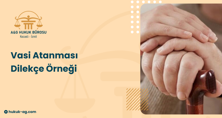 NOT: Bu vasi tayini dilekçesi örneği metni, örnek olarak hazırlanmış olup, dilekçede bahsedilmesi gereken hususlar her somut olaya göre farklılık göstermektedir. Kocaeli’de bulunan büromuza gelerek konuya ilişkin ayrıntılı bilgi alabilirsiniz. Kocaeli/İzmit bölgesinde değilseniz, iletişim kısmında yer alan mail adresimiz ve telefon numaramız ile avukatlarımızla irtibata geçebilirsiniz.